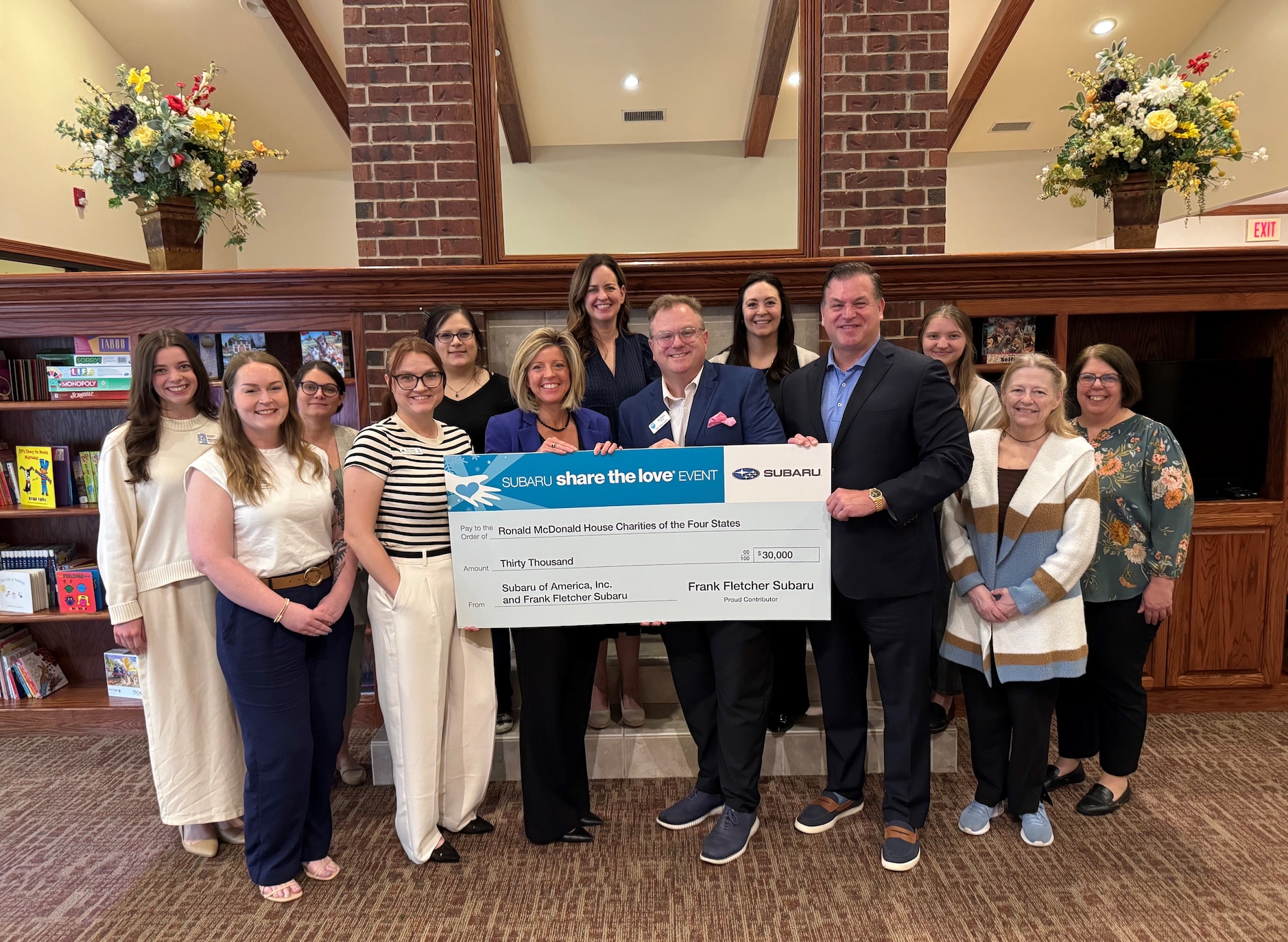 The funds were raised during the 2024 Subaru Share the LoveĀ® Event, which ran from November 2024 through early 2025. As part of this national initiative, Subaru customers were invited to select one of four national charities-or a local hometown charity-to receive a $250 donation from Subaru of America with the purchase or lease of a new vehicle. Frank Fletcher Subaru selected Ronald McDonald House Charities of the Four States as its hometown charity and contributed an additional $150 per vehicle sold or leased.